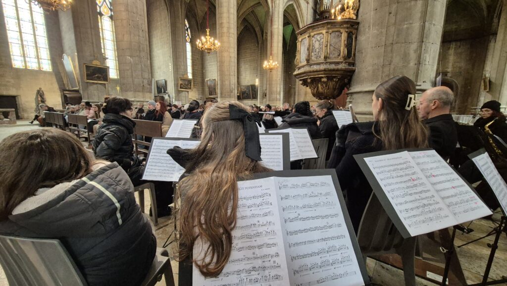 Dans le cadre de l’office, les musiciens ont offert aux fidèles et mélomanes un moment de grâce, où les sonorités orchestrales sont venues dialoguer avec la majesté des voûtes gothiques. Les bois, les cuivres, les percussions et les claviers se sont mêlés aux voix pour célébrer la patronne des musiciens, dans un esprit de ferveur et de partage.